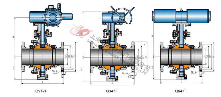 4、Q47F固定球閥主要根據剖面、長度、高度、外形等作出說明。