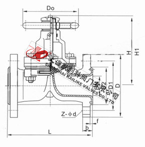 4、閥體與蓋被中間隔膜隔開,使得隔膜上方的閥蓋,閥桿零件不受介質(zhì)侵蝕;