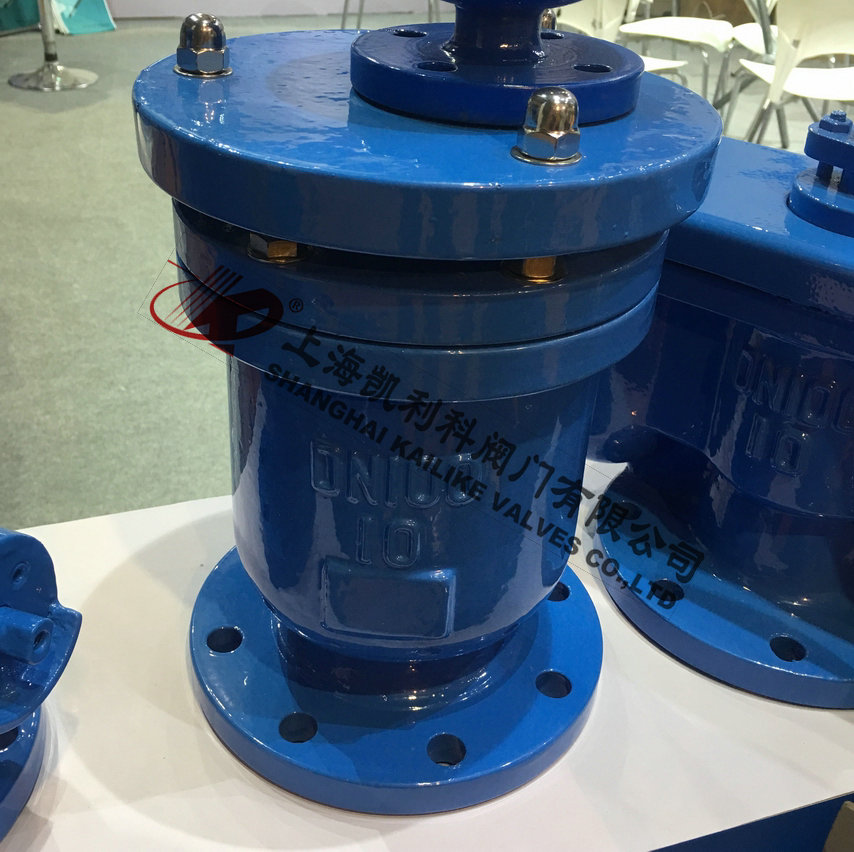 管道在運轉(zhuǎn)時,浮球停在球碗底部,進行大量排氣,當管內(nèi)空氣排完,水沖進閥內(nèi),經(jīng)過球碗然后反應浮球,使浮球浮動關(guān)閉,管道在正常運轉(zhuǎn)時,如有少量氣體會集中到閥內(nèi)到相當程度,閥內(nèi)水位下降,浮球隨之下降,氣體從小孔排出。如水泵停止,隨時會產(chǎn)生負壓力,浮球隨時下降,進行大量吸氣確保管路安全。