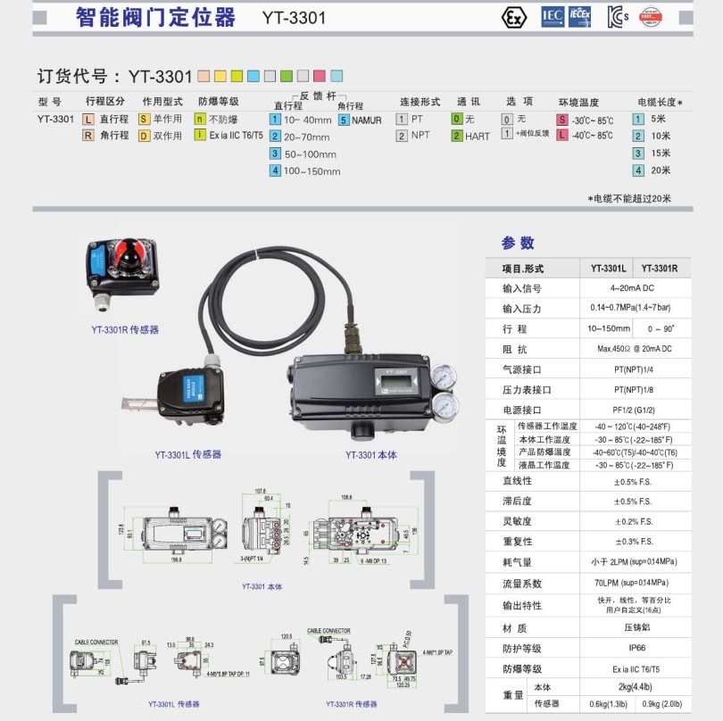 智能閥門定位器YT3301系列是通過(guò)接收控制器或控制系統(tǒng)發(fā)出的4~20mA 電流信號(hào)來(lái)控制閥門開(kāi)關(guān)的裝置。