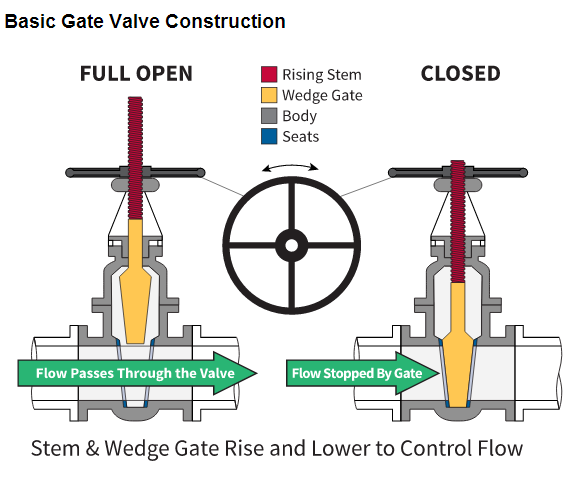 柵極通過移動楔形盤上下障礙物打開和關(guān)閉通過閥的流動路徑。這種線性運動通過桿螺紋上升。轉(zhuǎn)動該螺紋桿需要多次旋轉(zhuǎn)(多圈)從打開至關(guān)閉。轉(zhuǎn)速所需的閥尺寸通常是在3英寸X+2。因此將需要6英寸的閥20的芯柱(6)3[x+2]=20。它們應(yīng)當(dāng)僅用于開/關(guān)應(yīng)用,節(jié)流了較長時間,會損壞所述障礙物并密封。使用的閘閥節(jié)流還不是非常有效,因為大部分的流量將增長10%。
